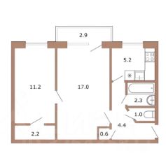 Площадь: 43,9 м²