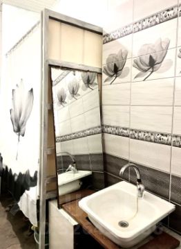 Комната расположена на солнечной стороне, что обеспечивает тепло зимой и приятное освещение в течение дня. В квартире предусмотрены три туалета и одна ванна, что значительно упрощает жизнь. Общая кухня оборудована всем необходимым: плитой, холодильником, микроволновой печью, а также есть отдельная комната для стирки со стиральной машиной.