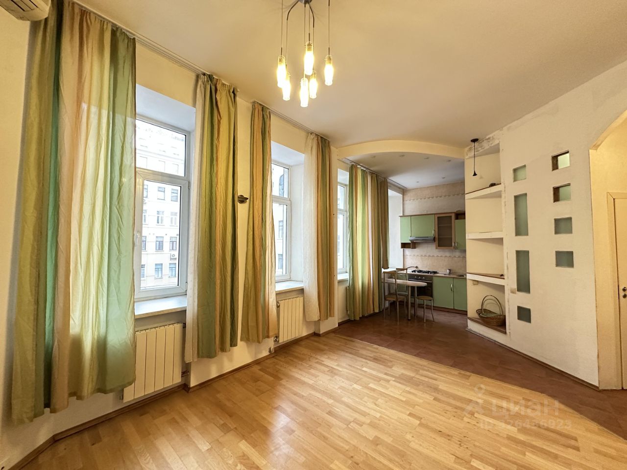 Потолки высотой 3,40 метра и четыре окна квартиры создают ощущение простора и дают возможность реализовать любые Ваши дизайнерские фантазии! Пространство этой замечательной квартиры может быть преобразовано по Вашему усмотрению. Окна квартиры выходят в тихий закрытый двор.