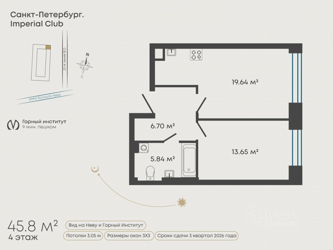 Высокие потолки 3,05 и большие окна 3 на 3 метра обеспечивают великолепный обзор на историческую часть Санкт-Петербурга.