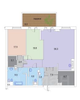 В квартире есть просторная терраса, с выходом из гостиной и спальни.