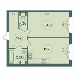 Общая площадь43,18 м²