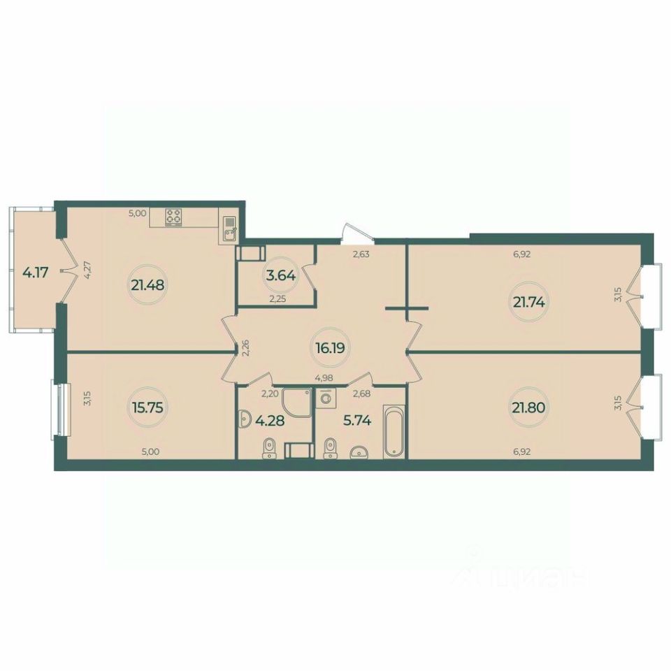 Площадь кухни21,5 м²