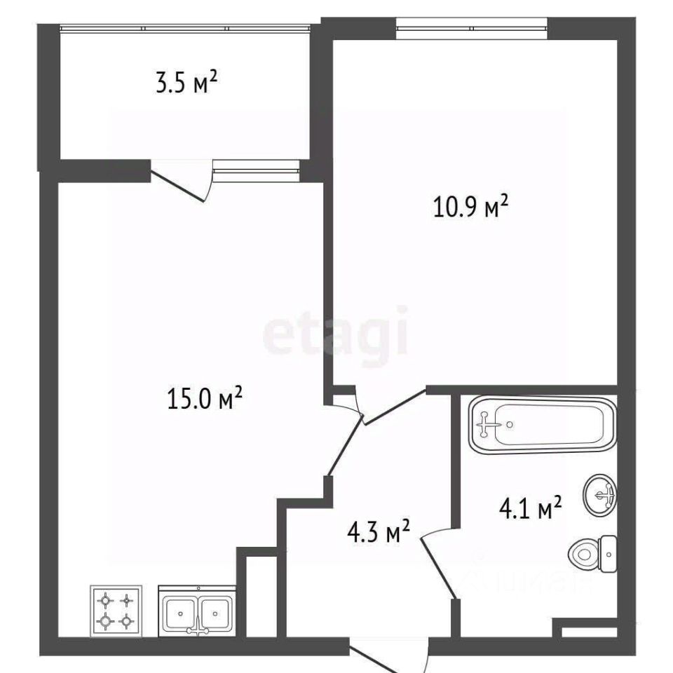 - Общая площадь 33,1 м², жилая площадь 9,8 м², площадь кухни 14,7 м²