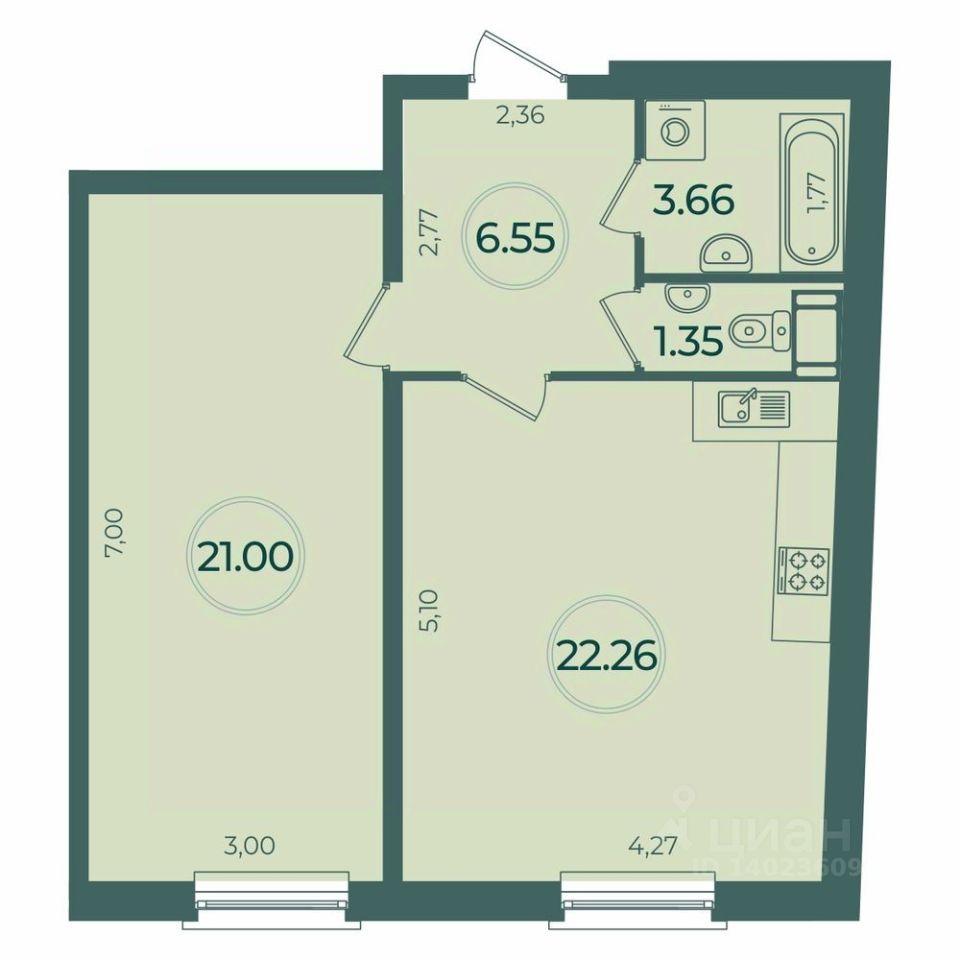 Площадь кухни22,3 м²