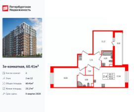 Удобная, классическая, функциональная европланировка, большая кухня-гостиная 17.04 м², вместительная прихожая 7.76 м². Общая площадь квартиры - 60.41 м², жилая 25.17 м², высота потолка 2.77 м.