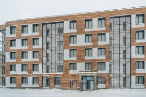 • Фасады из керамогранита и кирпича с яркими и акцентными входными группами