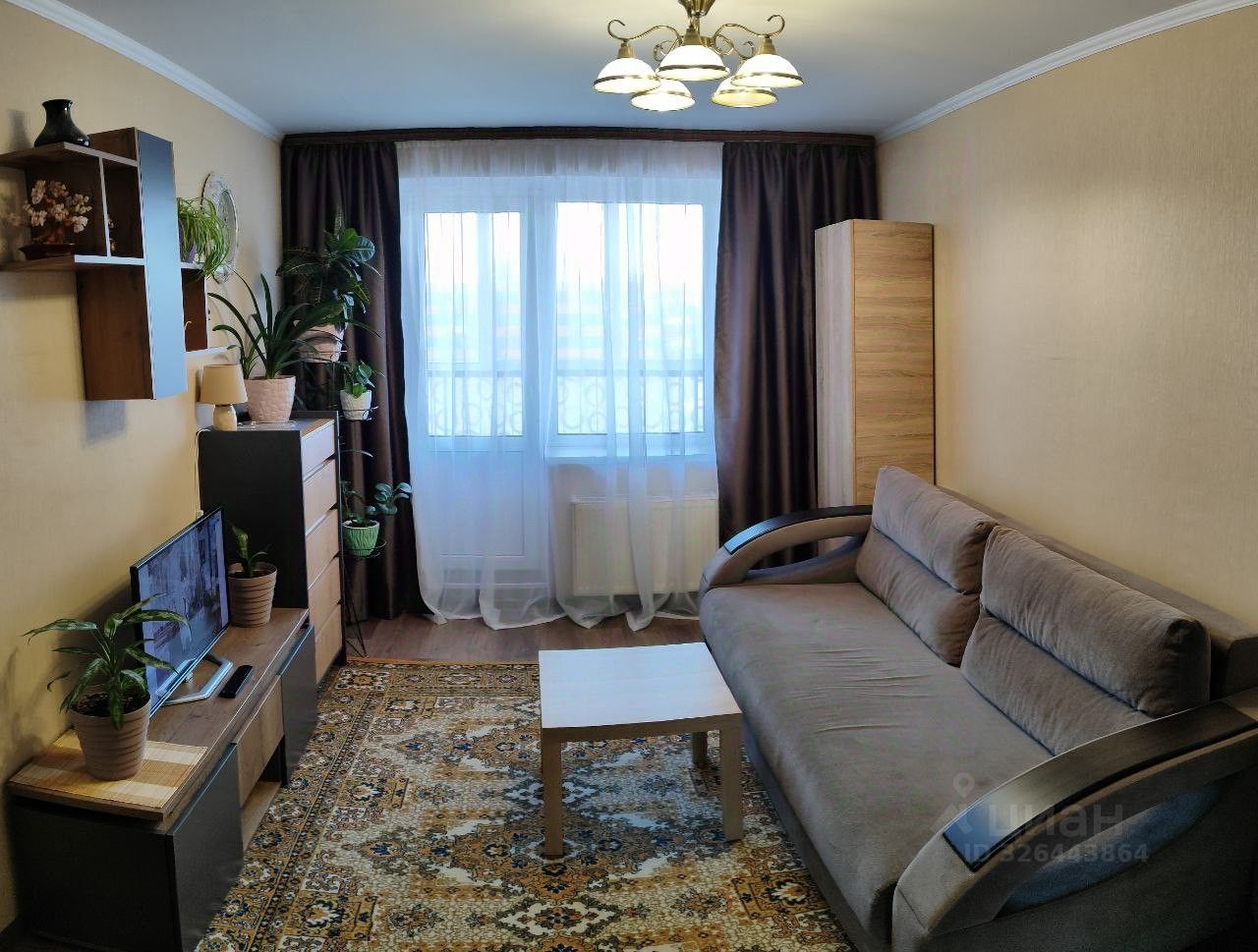 Уютная однокомнатная квартира. Окна на восток (солнце в первой половине дня). Большая лоджия (выход из комнаты). Вся мебель остается. На кухне и в коридоре плитка.