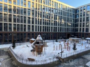 - На территории комплекса сквер с ландшафтным дизайном, гамаками, спортивные и игровые площадки.