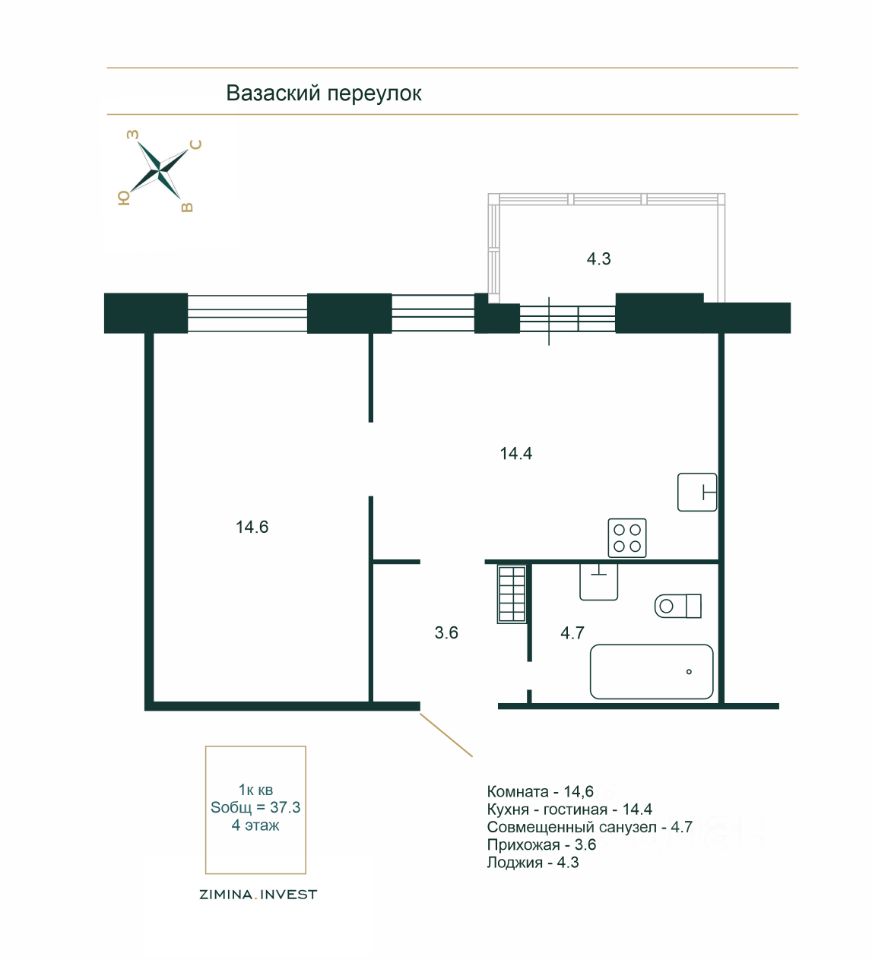 Площадь в объявлении 37,3 м. кв. указана без учета площади застекленной лоджии.