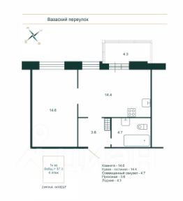 Кухня-гостиная - 14,4 м. кв.