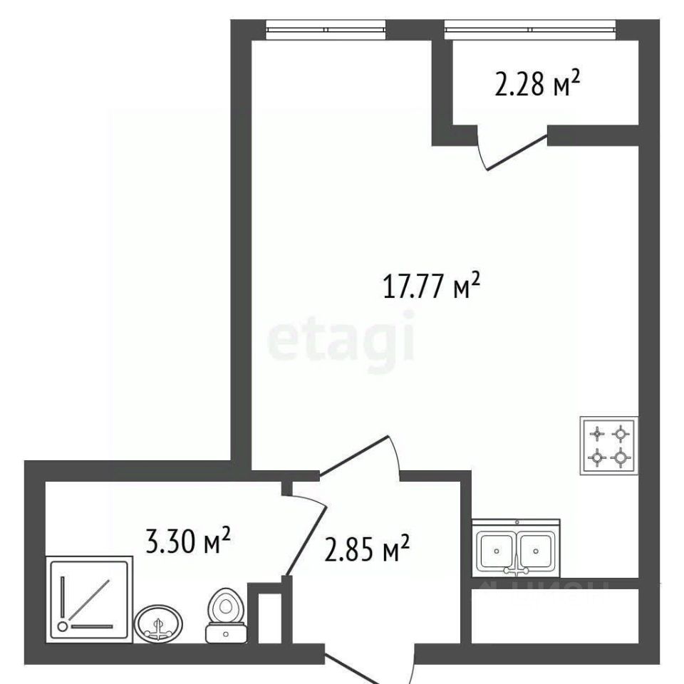 До метро можно добраться пешком всего за 20 минут. Общая площадь студии - 23,92 м², высота потолка 2.77 м.