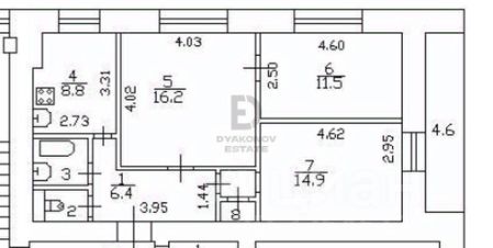 Площадь комнат (16,2 +11,5 + 14,9)+ 8,8 кв.м - кухня + прихожая 3,95 кв.м.