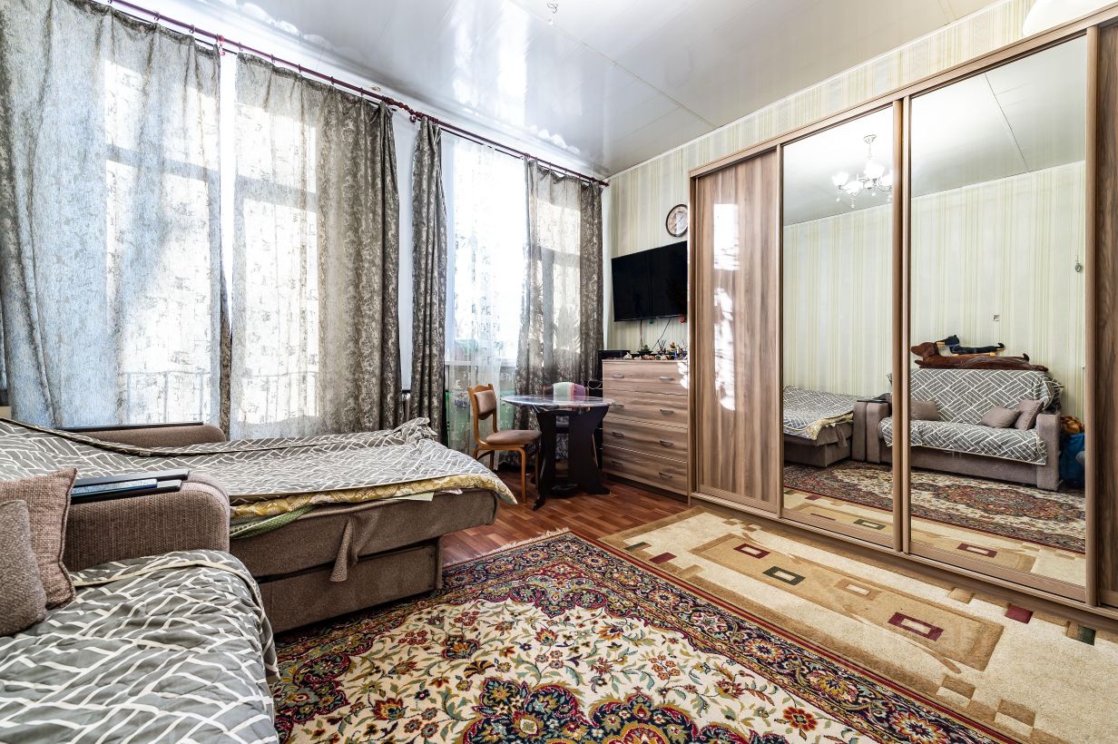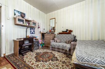 Комната расположена в 3-хкомнатной квартире на комфортном 2-м этаже кирпичного дома, построенного в 1940 году в стиле Сталинского неоклассицизма. В доме всего 3 парадные, по 2 квартиры на этаже.