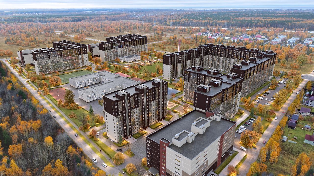 Дворы закрыты от машин, что обеспечивает безопасность детей и взрослых. Для семей с детьми особенно удобно наличие детского сада и школы прямо во дворе комплекса.