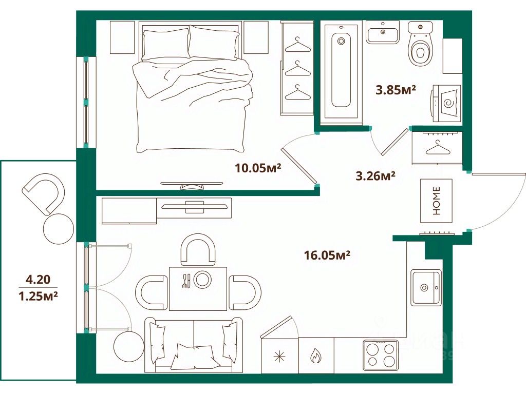 Продаётся 1-комнатная квартира 875, общей площадью 34.46 кв.м., на 7 этаже. Дом комфорт-класса, 12 этажей, в окружении леса и малоэтажной застройки. Проект с умным домом. Дом сдан.