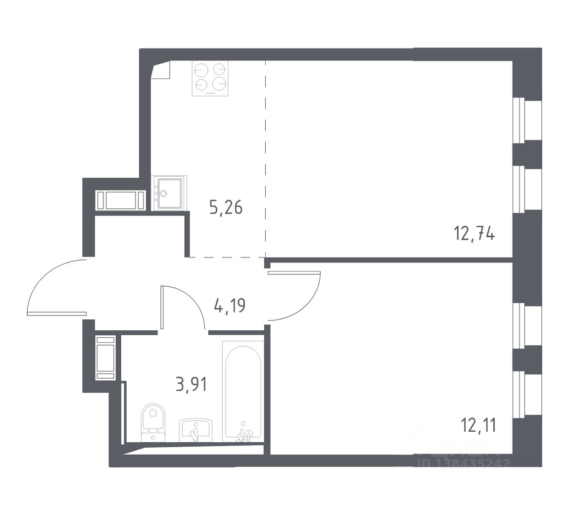 Строим кварталы для жизни с заботой о будущем. Предлагается 1-комнатная квартира комфорт-класса площадью 37,5 кв.м в корпусе 1.1 на 12-м этаже, в жилом комплексе "Новые Лаврики".