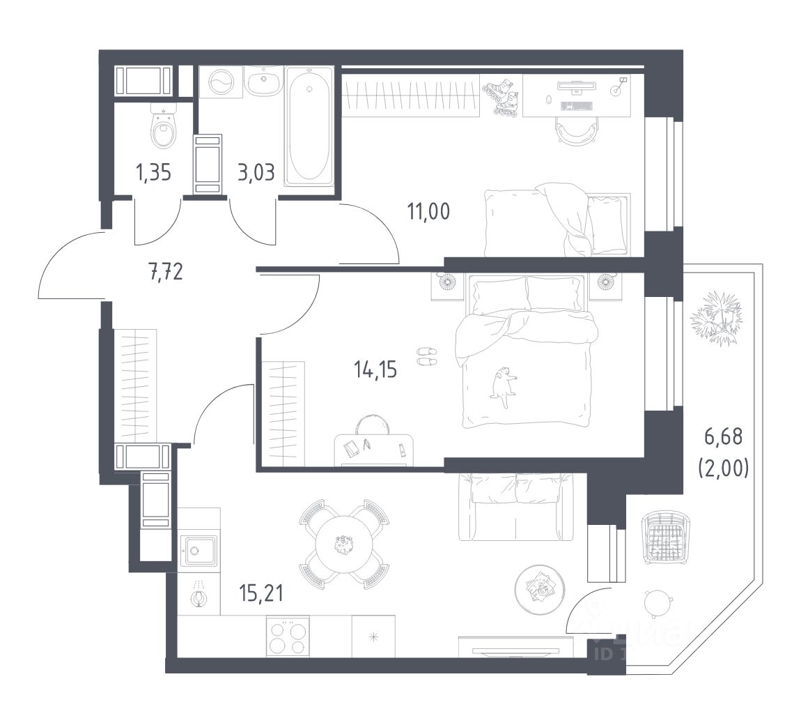 Площадь кухни15,2 м²