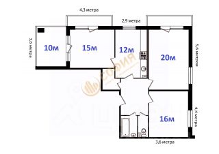 Просторная кухня 12 м2, три изолированные комнаты 16 м2 + 20 м2 + 15 м2. Санузел раздельный, прихожая правильной формы, есть помещение под гардеробную. Удобно и функционально.