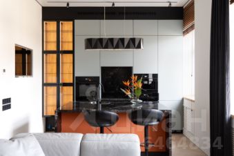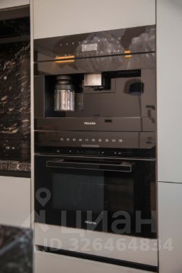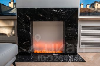 Кухня-гостиная 40.6 м²: Пространство для приема гостей с камином и островом из натурального камня и мягкой мебелью знаменитой итальянской фабрики Natuzzi. Вся кухонная техника — премиального бренда Miele (посудомоечная машина, духовой шкаф, варочная панель, микроволновая печь и кофемашина). Дополняют картину встроенный винный шкаф и робот-пылесос с системой самоочистки. Для киновечеров установлена современная проекторная система с экраном.