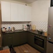 Кухня укомплектована прекрасным кухонным гарнитуром с техникой, который бонусом остается новым владельцам.