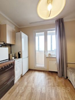 Квартира общей площадью 39.9м с учетом лоджии, 36,6м - без лоджии. Кухня правильной прямоугольной формы, площадью 10м с выходом на лоджию. Комната - 18м. Санузел отдельно от ванной комнаты. Состояние квартиры хорошее, с минимальной амортизацией.