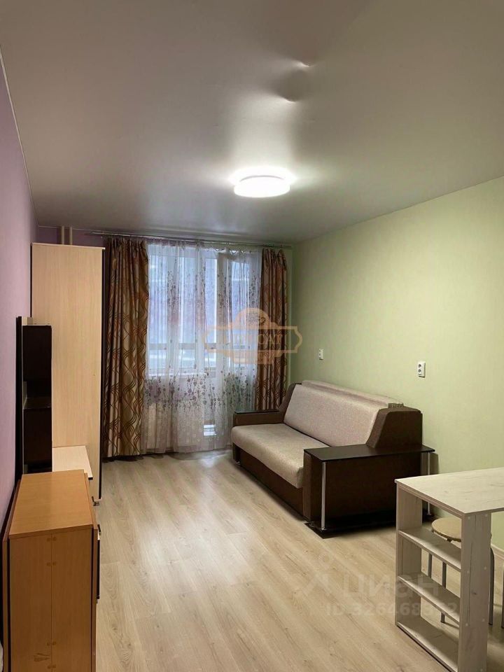 Кухня оборудована необходимой техникой, включая холодильник и микроволновую печь. В комнате установлен вместительный шкаф и удобный диван. Из окна вид на тихий двор, где расположена детская и спортивная площадки. Дом оснащен пассажирским и грузовым лифтами, а также открытой парковкой во дворе. Санузел совмещенный, выполнен в светлых тонах. Большое преимущество, установлена ванна, а не душевая кабина.