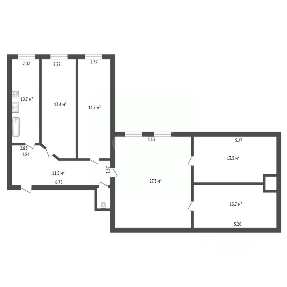 Заменена вся электропроводка. На кухне площадью 10,6 кв. м установлен новый водонагреватель, газовая плита, натяжной потолок; также остаются стиральная машина, стол и шкаф.