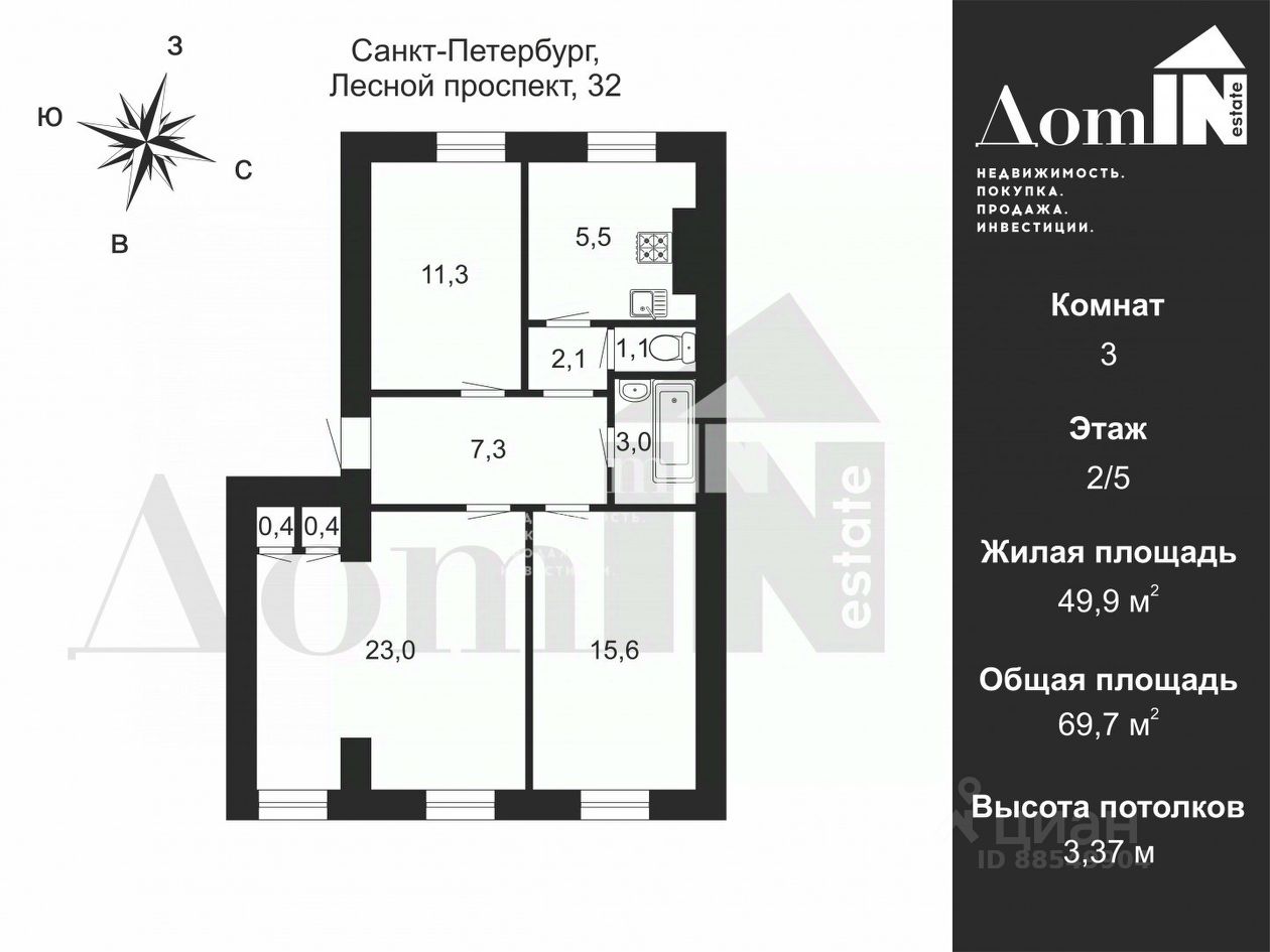 Арт. 129425798 В одной из лучших локаций Выборгского района в 1 минуте ходьбы от ст. м. Выборгская продается уютная 3-х комнатная квартира в добротном сталинском доме с изолированными комнатами на втором этаже. Дом кирпичный, 1937 года постройки.