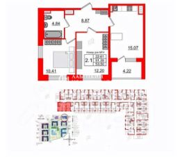 * Комнаты (12.2 и 10.4 м²) ПРАВИЛЬНОЙ формы, что позволяет удобно расставить мебель. В одной из комнат обустроен личный кабинет, на месте которого при необходимости может расположиться детская комната.