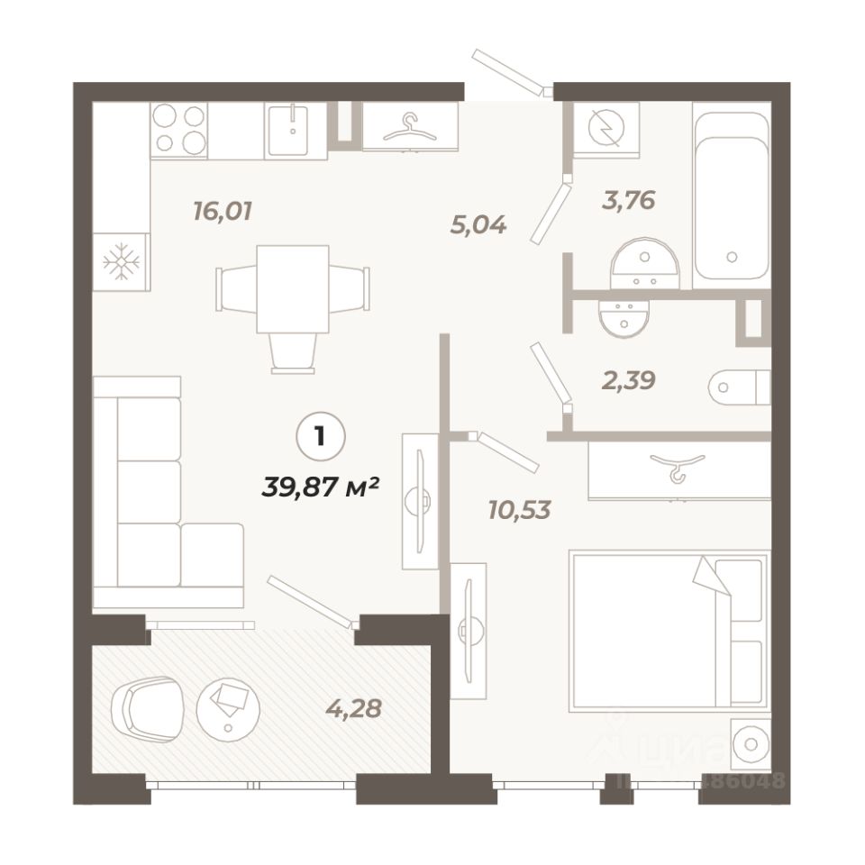 Общая площадь: 39.87 м²
