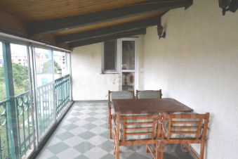 большая крытая терраса с видом на палисадник и город