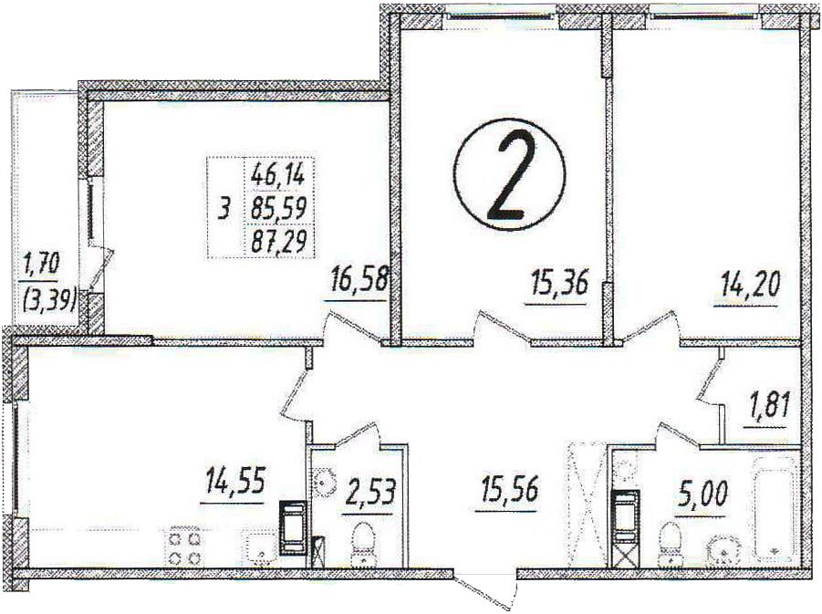 Общая площадь87,5 м²