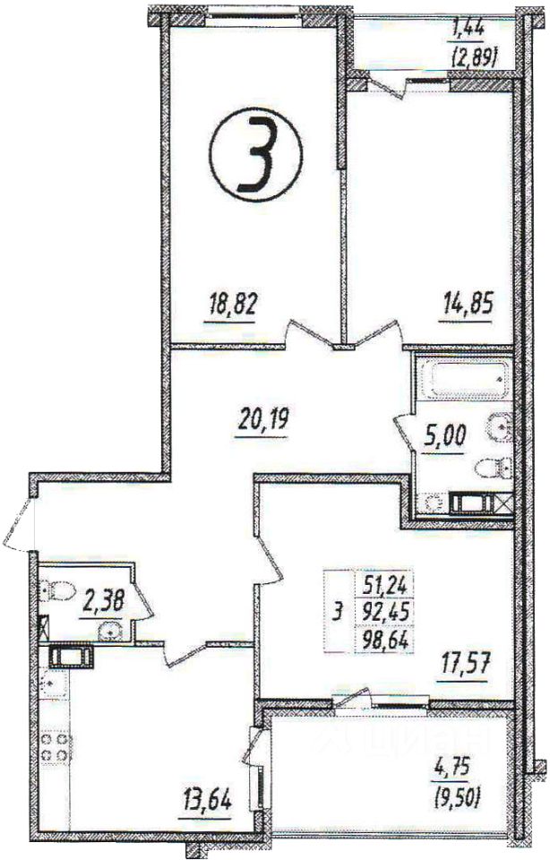 Общая площадь99,5 м²