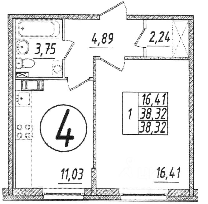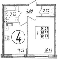 Общая площадь38,6 м²