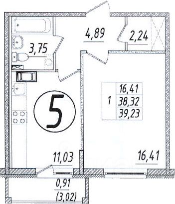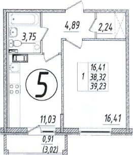 Общая площадь39,5 м²