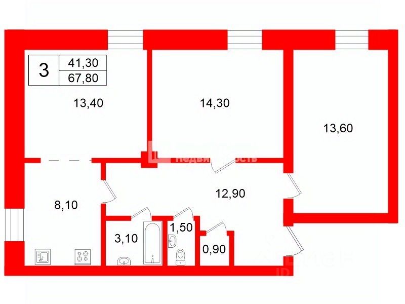 Номер объявления: 21191 - назовите его оператору. 170 км. от С-Пб, г. Сланцы, 3 к.кв., 1 этаж, кирпич, общ. пл. 67,8 кв.м., жил. пл. 41,3 кв.м., комнаты раздельные 13,4+14,3 +13,6, кухня 8,1 кв.м. Узаконенная перепланировка.