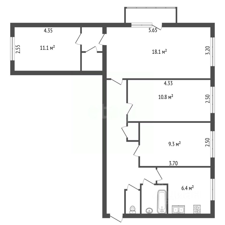 Общая площадь составляет 74 кв.м, из которых 55.7 кв.м приходится на жилые комнаты, что обеспечивает комфортное размещение для большой семьи. Кухня площадью 6.4 кв.м и высота потолков 2.5 метра создают ощущение простора.