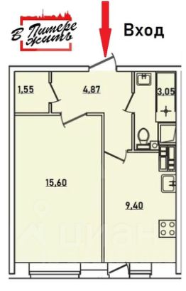 Квартира имеет удобную функциональную планировку, комната 15,6 кв.м., кухня, 9,4 кв.м., прихожую, вместительную гардеробную, и совмещенный санузел. В квартире выполнен евроремонт. На полу ламинат, в санузле плитка.