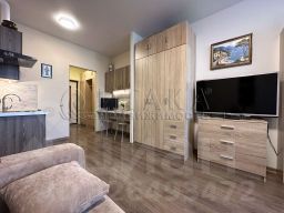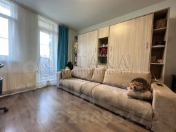 ***Хороший косметический ремонт (на полу ламинат и керамогранит, натяжные потолки), сделано правильное зонирование в квартире: хорошая прихожая, полноценная кухонная зона, зона отдыха с выходом на застеклённую лоджию, множество мест хранения, удобные складные кровати-трансформеры (смотрите фото)