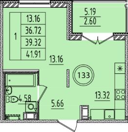 Площадь кухни13,3 м²