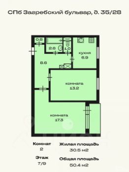 Общая площадь50,4 м²