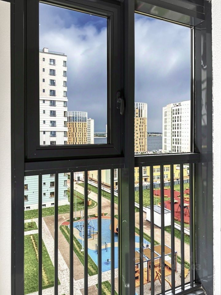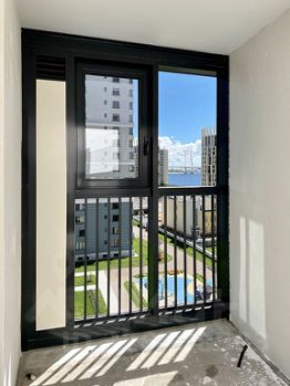 Квартира находится в современном жилом комплексе на 8 этаже, кухня с видом на залив и спальня с видом на парк.