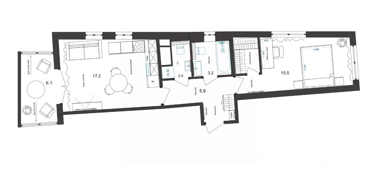 Квартира без отделки, что позволяет вам реализовать все ваши дизайнерские идеи.