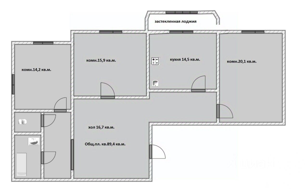 Площадь: 89,4 кв. м. — максимум полезного пространства.