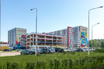 На территории находится субсидированный детский сад на 80 мест и крытая многоуровневая охраняемая парковка. Организованы детские площадки, есть свободные парковочные места для автомобилей, произведено благоустройство внутридомовых территорий.
