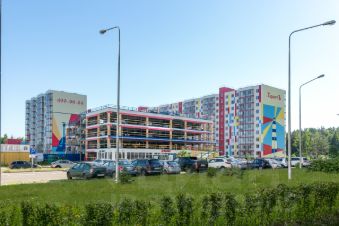 На территории находится субсидированный детский сад на 80 мест и крытая многоуровневая охраняемая парковка. Организованы детские площадки, есть свободные парковочные места для автомобилей, произведено благоустройство внутридомовых территорий.