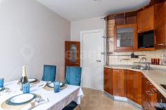 - Кухня: Просторная и очень светлая кухня, на которой разместятся все ваши гости! Мебель изготовлена на заказ с использованием дорогой и долговечной фурнитуры. Вы оцените ее удобство и функциональность.
