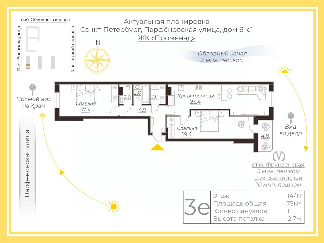 Жилой дом расположен в центре Петербурга, в статусном Адмиралтейском районе, в минуте ходьбы от метро "Фрунзенская".