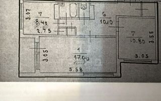 Косметический ремонт позволяет новым владельцам воплотить свои дизайнерские идеи. Совмещённый санузел обеспечивает удобство и функциональность.